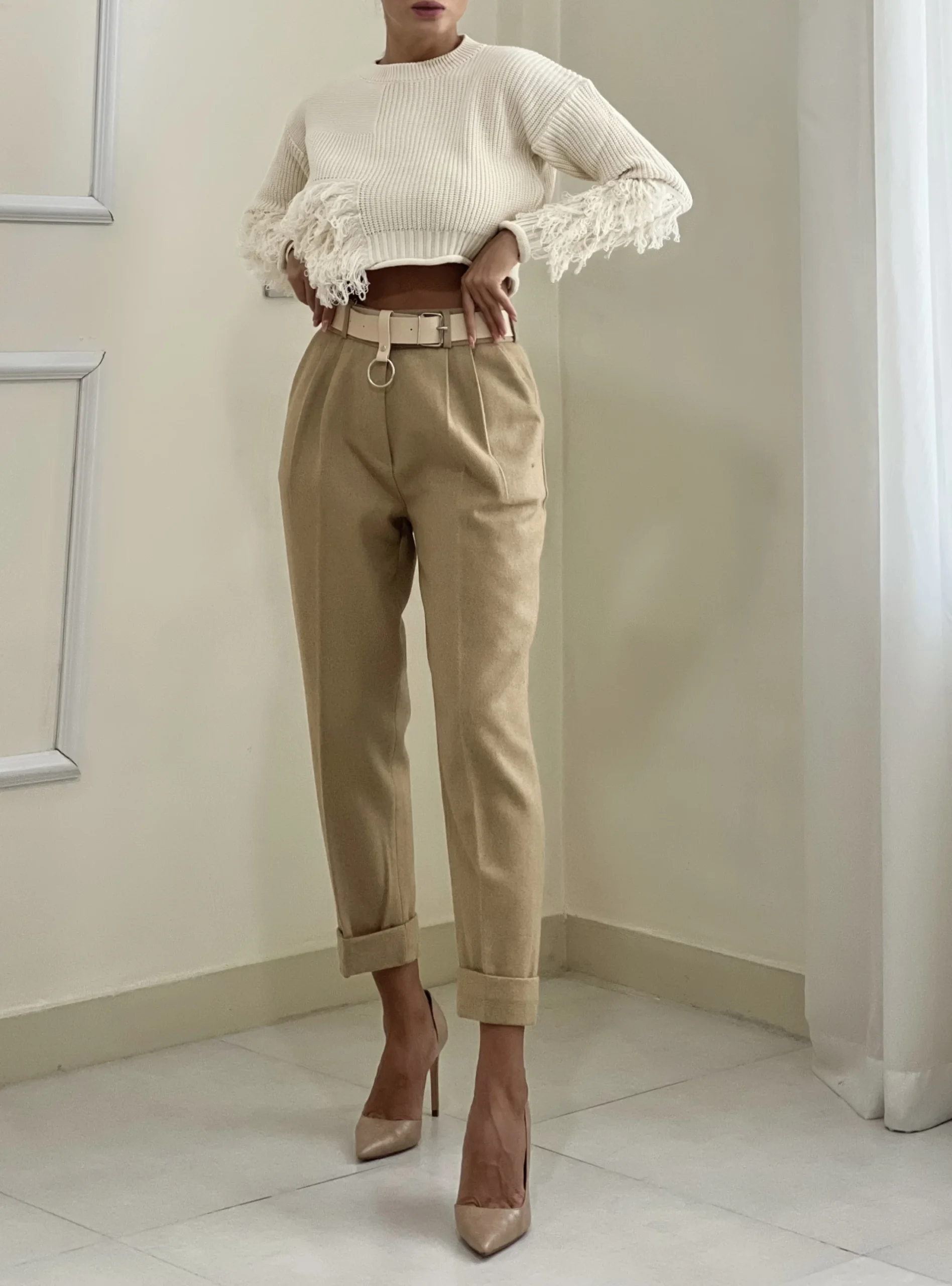 بافت کراپ شیک و گرم، انتخابی ترند و جذاب برای استایل‌های پاییزی و زمستانی.
