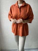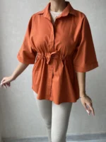 این شومیز ساده با رنگ جذاب نارنجی، گزینهای عالی برای افرادی است که به استایلهای مینیمال اما خاص علاقه دارند. طراحی ساده و برش تمیز آن باعث میشود بهراحتی با آیتمهای مختلف ست شود و ظاهری مرتب و شیک ایجاد کند.